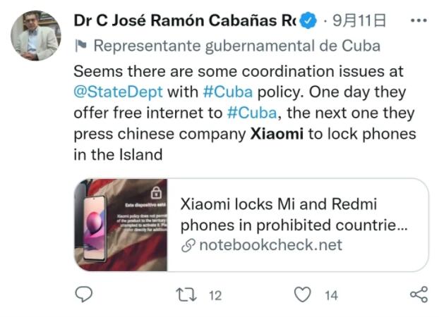 俄新社9月10日发布的一篇报道显示,小米已限制在世界某些地区使用其智能手机,影响了古巴、伊朗、叙利亚、朝鲜、苏丹以及俄罗斯的克里米亚。据悉,在上述地区激活小米手机的用户会在屏幕上看到一条消息:小米的政策不允许在该地区销售产品。俄媒并没有详细指出其中原因,但相关评论指向了美国的“长臂管辖”。